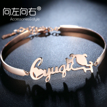 向左向右订定做925银手镯手环名字母手镯女送闺蜜送女友 礼物