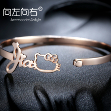 向左向右镀玫瑰金黄金色刻字手镯情侣手镯男手镯女皮带扣手镯手环