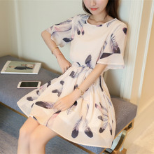 2017夏装新款女装韩版中长款雪纺印花连衣裙女修身短袖裙子a字裙