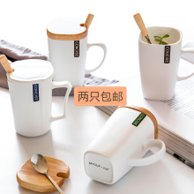 肆月。熹微 简约创意陶瓷马克杯咖啡杯 办公室杯子情侣水杯带盖勺