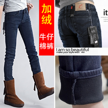 2017加肥大码加绒牛仔裤 女冬显瘦小脚裤铅笔裤 靴裤棉长裤中腰