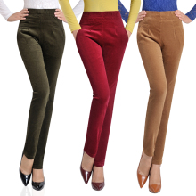 秋冬加绒加厚灯芯绒女裤高腰弹力长裤条绒直筒裤中年休闲裤有大码