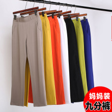 夏装薄款妈妈裤子 高腰直筒裤女九分裤 宽松休闲裤大码中老年女裤
