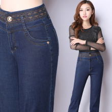 秋季妈妈裤装 中年高腰牛仔裤女直筒裤长裤子 宽松刺绣大码休闲裤