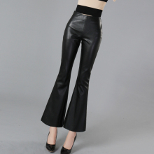 皮裤女外穿2017新款秋冬季PU复古高腰修身显瘦黑色九分微喇叭裤子