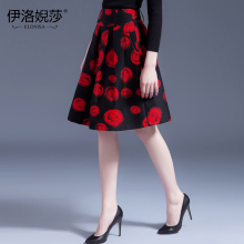 2016秋冬新款印花毛呢半身裙女长款大码毛呢中长款大摆裙a字裙冬