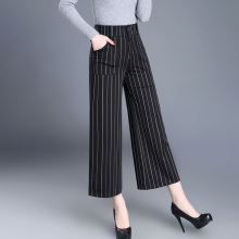 韩国高腰阔脚裤女长裤2017新款春秋宽松裤子大码直筒条纹九分裤