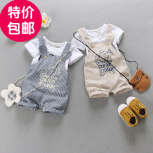 男女宝宝夏装婴幼儿短袖套装宝宝背带中裤套装0-1-2-3岁夏季新款