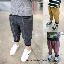 Tinky童装2017春装新款儿童大口袋小脚垮裤中大童哈伦裤男童裤子