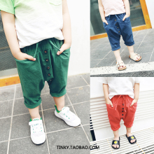 Tinky童装2017夏季新款潮男童棉麻中裤儿童纯色休闲裤中大童裤子