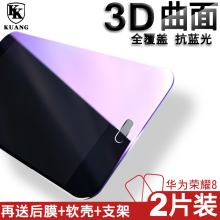 酷昂 华为荣耀8钢化膜全屏覆盖3d软边曲面软膜抗蓝光防指纹手机贴