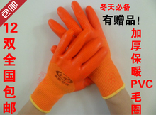 12双包邮劳保手套冬季防寒保暖加绒毛圈 PVC牛筋耐磨浸胶手套加厚