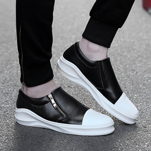春季休闲鞋秋鞋韩版百搭潮男皮鞋青少年白色板鞋男鞋个性拉链潮鞋