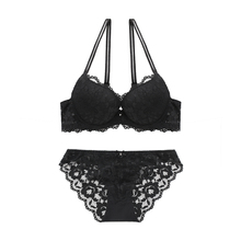欧美法国新款性感诱人镂空蕾丝文胸 背心式美背深V女士内衣套装