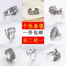 S925纯银戒指韩版设计复古凤凰多层六芒星食指个性开口百搭男女款