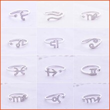 s925纯银戒指 日韩版十二星座可爱女生镶钻开口指环