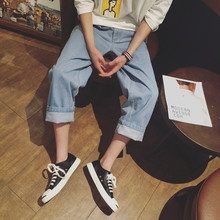 文艺男青年 宽松阔腿裤简约百搭夏港仔水洗牛仔裤子男士九分裤潮