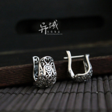 【图腾】泰银925纯银饰品 民族风格小菊花 镂空复古女款耳扣耳钉