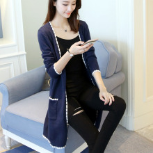 针织衫女开衫中长款2017春装新款女韩版修身长袖毛衣女外套披肩潮