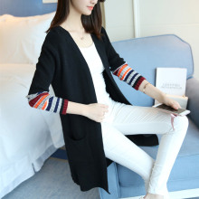 2017春装新款女中长款韩版宽松撞色针织衫女开衫毛衣外套女春秋潮