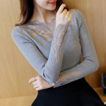 2017春季新款韩版女装修身毛衣打底衫女蕾丝套头长袖显瘦针织衫