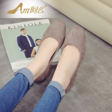 【清仓】春夏新品韩版圆头女鞋简约浅口粗跟中跟套脚纯色通勤单鞋
