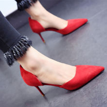 红色高跟鞋尖头2017新款细跟秋鞋7cm百搭中跟黑色单鞋女士浅口鞋