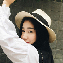 夏季平顶英伦草帽小礼帽女蝴蝶结海边沙滩帽韩版白色草帽遮阳帽