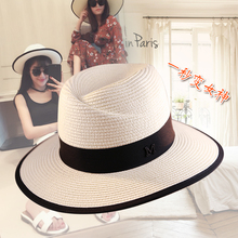 爵士草帽春夏防晒沙滩海边遮阳帽子女士平檐可折叠草编休闲礼帽