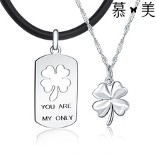 七夕情人节礼物四叶草情侣项链925银饰品男女一对吊坠韩版可刻字