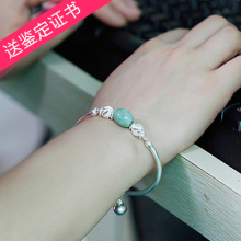 S999足银翡翠路路通转运珠纯银手链女手镯铃铛佛珠甜美生日节礼物