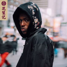 花笙记原创中国风 99花鸟刺绣 男春黑薄休闲民族复古潮带帽卫衣