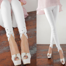 春秋新款时尚蕾丝花边闪钻外穿打底裤弹力高腰小脚裤长裤白色大码