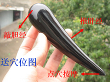 正品天然手工黑水牛角实心点穴棒敲胆经拨筋棒送男友送父亲良品