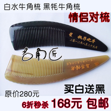 可刻字 白水牛角梳子 天然 正品 送黑牦牛角梳 婚庆对梳直发梳子