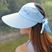 帽子女夏天防晒遮阳帽户外凉空顶帽可折叠大沿防紫外线沙滩太阳帽