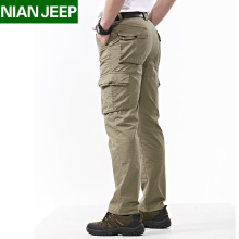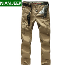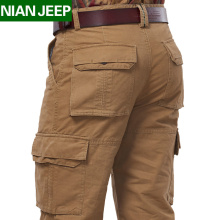 NIANJEEP男裤休闲工装裤男长裤夏季薄款多口袋 纯棉宽松直筒军裤