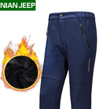 NIANJEEP男裤防风防水保暖加绒加厚抓绒冬季弹力休闲裤 男冲锋裤
