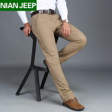 吉普盾纯棉男士长裤秋季厚款休闲 高腰工作裤子宽松商务西裤下装