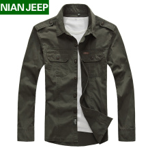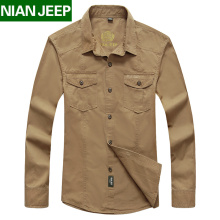 吉普盾夏季男士棉休闲长袖衬衫 大码军装寸衫翻领宽松工作衬衣