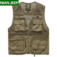 吉普盾男士钓鱼马甲多口袋摄影马夹 夏季网眼棉薄款休闲户外背心