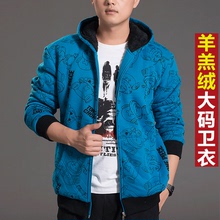 秋冬胖胖大码潮男装星球加肥加大海贼王外套嘻哈连帽衫羊羔绒卫衣