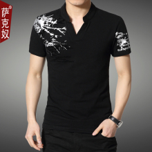 夏季薄款大码男装短袖T恤男式加肥加大特体恤V领宽松胖子打底衫男