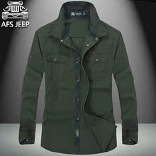 AFS JEEP夏季衬衫男长袖青年薄款纯棉宽松男装商务休闲寸衫男衬衣