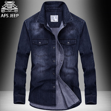 AFS JEEP牛仔衬衫男长袖青年修身韩版潮流帅气外套休闲寸衫男衬衣