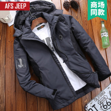 战地吉普白鸭绒冬季加厚男士羽绒服 中长款青年连帽 大码男装外套