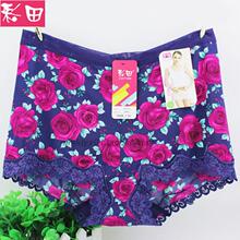 4条包邮彩田正品女内裤高腰平角女内裤30606冰丝印花性感蕾丝大码