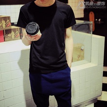 2015日系潮牌全棉修身夏季男士纯色T恤短袖圆领韩版休闲体恤衫男