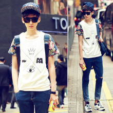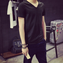 2015新款夏季男士短袖修身时尚休闲潮流连帽T恤男夏季青少年T恤