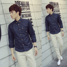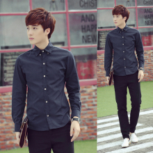 秋季丝光棉纯色韩版长袖衬衫男修身休闲青少年学生日系男士衬衣潮